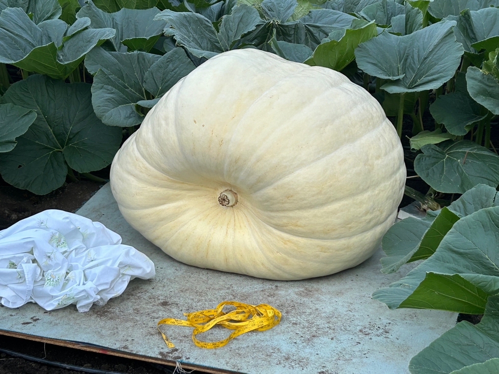 Having a day 34 slunger like this one helps ease the pain of losing JLo! After eight consecutive daily gains of 46+ pounds this white beast is closing in on 600 pounds. This pumpkin is now officially known as �The Slunger.� Travis seems to think that if you can string together thirty days of 50+ pounds a day that you have a shot at 3,000 pounds. I'm not greedy; I'd be happy with 120 pounds less (30 days x 4 lbs). The 2880 Pugh has a nice ring to it.