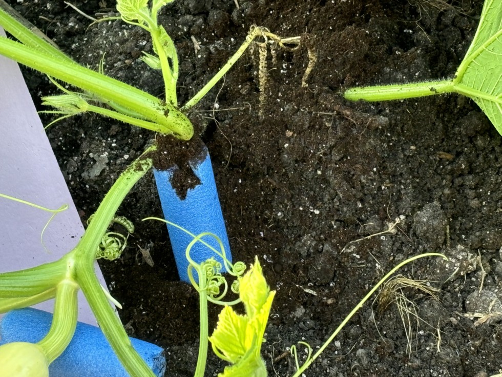Noodle Filled with soil. Re- Inoculated the entire patch on Monday morning via drench. Had reapplied Fermented Brews drenched in for several days. Then added fresh top dressing of Myco with peat moss and perlite to the crown area. Then drenched everything with Kat bio's from Amazon just ahead of the rain.
