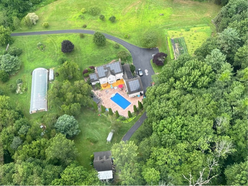Thought this was pretty cool. Wanted to share this photo. Yesterday while working in the Greenhouse, a friend that flies helicopter for the state of Rhode Island did a fly over and sent me this picture. My Pumpkins are growing in that long greenhouse in the left side of the picture and you can see the 150 structure also on the side of it. When I blew it up, I could actually see the Koi fish so I guess like Ken D said they are getting big.