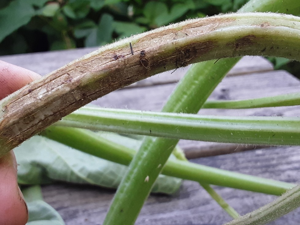 Bad section, possibly where the disease entered. Burying the vines is a nice idea... But if they are going to rot or get attacked by bugs, then I'm not sure its worth it.