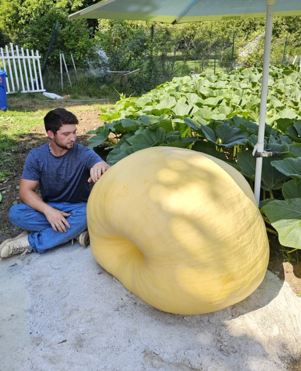 And, because I posed with the Stelts, here's a photo of me yesterday (DAP 29) with the Graham pumpkin.