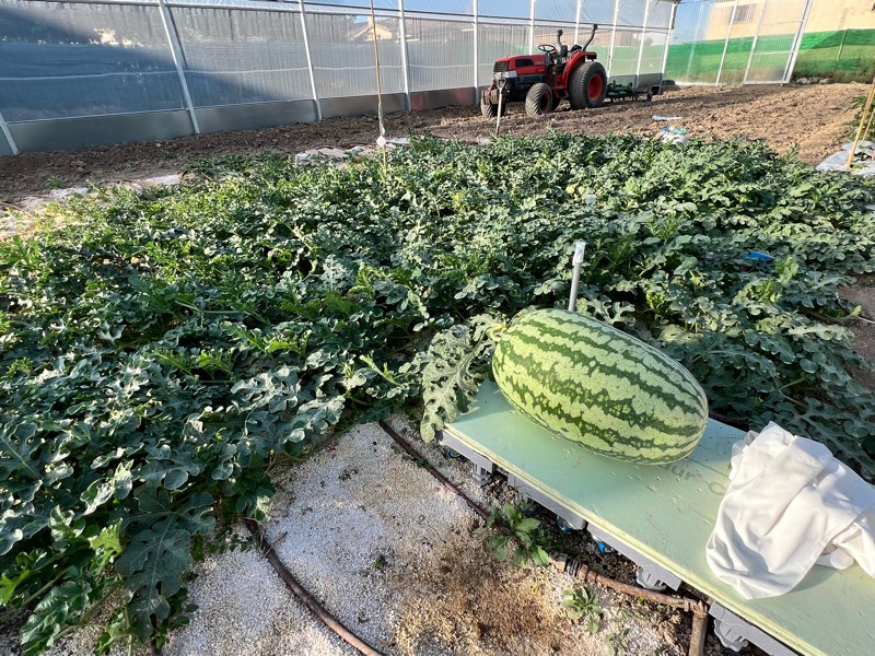 MI Watermelon Potra Salvaje, I only have one plant, which I had at the beginning of June in a pot, without grafting, and a seed of my friend Monfort 141 monfort (272.5 neptunes x 318.5 kent) is doing really well in the new greenhouse, 17 days and it is already at 54 pounds, with an average of 5.75 pounds the last 4 days. The extra roots that the plant has in the perlite I think are helping. I'm loving watermelons right now, but with 105-110f inside the greenhouse it's not easy.