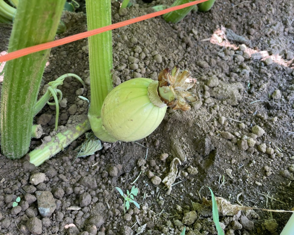 The results of my first pollination experiment. This pumpkin was successfully pollinated with 5 male flowers kept in the fridge for 3 overnights.