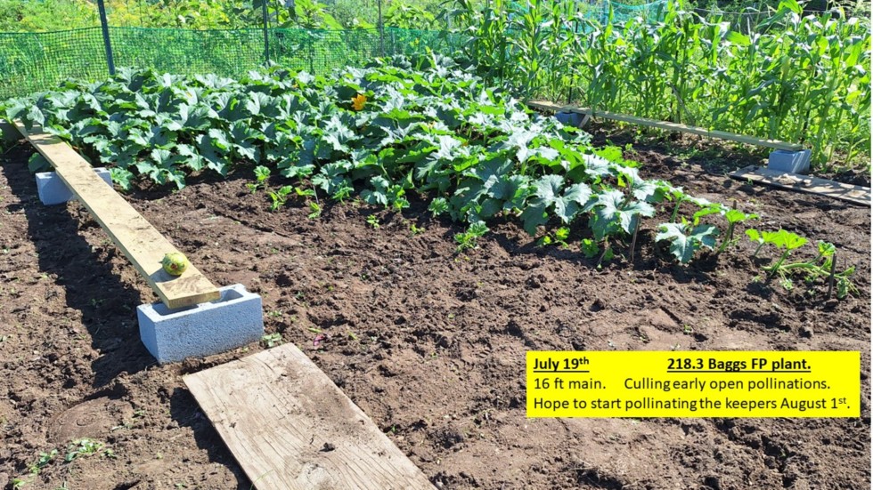 My 218 Baggs and 235 Razo FP's are in good shape. 16-17 ft mains. Lots of vine burying and training. Been culling a lot of rogue open pollinations. Waiting until August 1st to pollinate my keepers. These plants love the cooler evenings we have started getting. But now I need to start the fungicides to prevent Powdery and Downey mildew. Should slow down their rampant growth, which is OK with me.