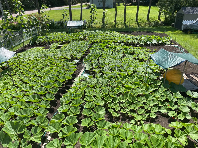 Happy mid summer and our weekly recap of trying to grow big stuff. A couple of our plants have paid the price of heavy rains and saturated soil that has terminated a few secondaries. Overall the plants are healthy and we have 4 pumpkins plugging along.