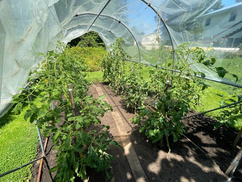 Tomatoes are growing decent but a few appear to have the start of BER. Sometimes the black is just a thin layer and it peels off as the tomato swells. Starting to top off a few plants with keepers selected.