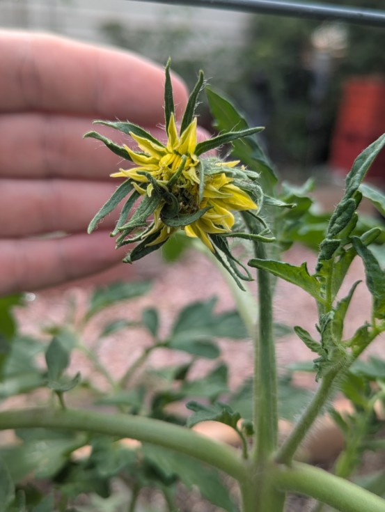 The megabloom on the 7.06 is now open enough to pollinate. There is not much pollen from the flowers on the plants yet. It has been raining a bunch over the last day .that could be stifling the production. It's going to be much dryer and warmer over the next few days so that should help me find more pollen