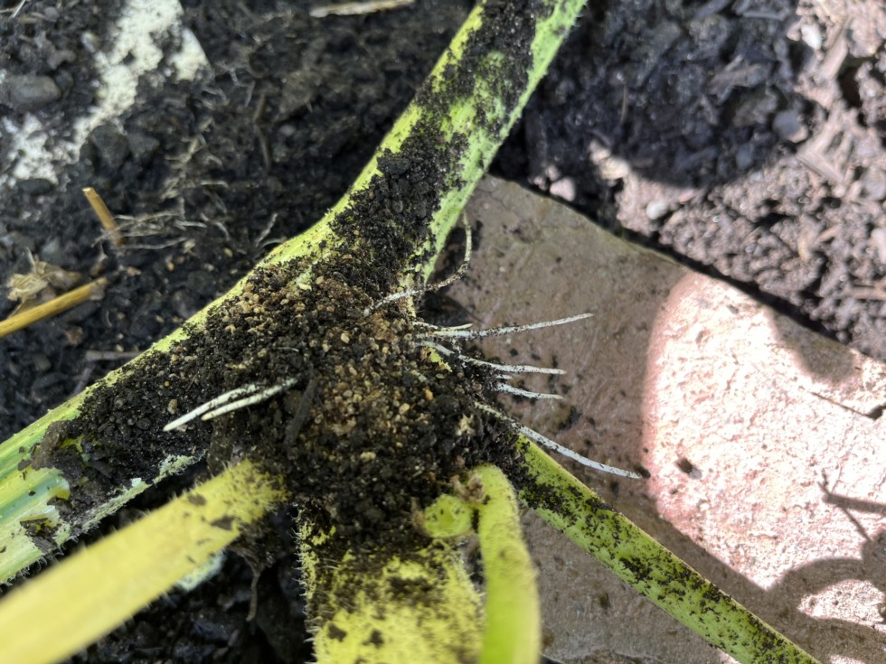 Nice to see roots like this. Remnants of WOW Soil and Plant Booster and MI, and Espoma Biotone.