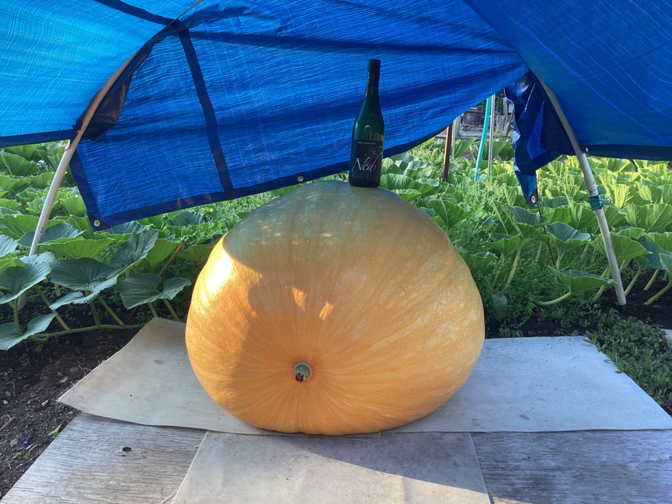 839 Sandercock (Ned) is a slow and steady grower so far, is Dap 43 today and has been doing 13-15 lbs a day for the past 2 weeks. Perfect beer keg shape so far on this fruit and is the likely our Elysian Brewery Weighoff entry for us this year if we get some pumpkins to the finish line.