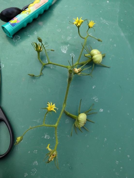 It's been super hot here for the last week or so. Usually that makes it so the tomatoes won't set. All these baby tomatoes are flowers that I have been buzzing for pollen. When I get pollen I gently bump the stamen against the spoon to get the vibration I need to bump out the pollen. I'm guessing when I do this it also has the bonus effect of sticking the pollen that has dropped into the spoon on to.the stamen. Probably a great way to set tomatoes even if your not hand painting them. You will also get a feel for when the flowers are producing pollen. Better that just shaking and pray method. :).