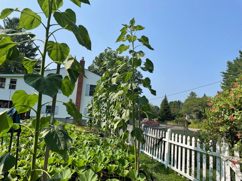 Sunflowers are all starting to head. Tallest is right around 16 feet. These are fun easy giants to grow.