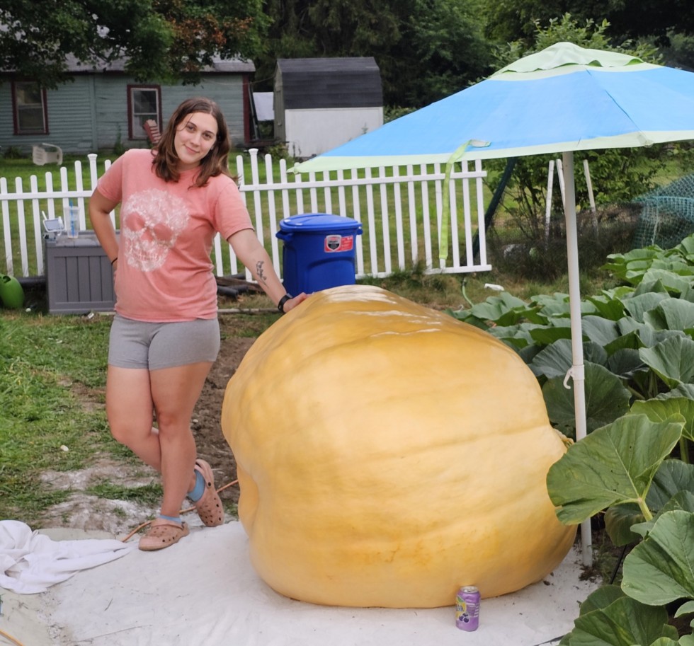 "Spitfire", my big pumpkin (1832.5 Graham) is still doing her thing at 45 days old. She estimates 1,165.2 lbs and has averaged a little over 41 lbs/day for the last 5 days.
