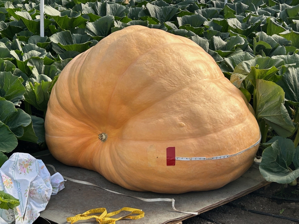 Yesterday was day 50 for my pumpkin without a name growing on my 2560 Gienger plant. It is very tall & wide. It tapes about 45 pounds bigger than the Slunger did on day 50! It put on 365 pounds in the last 10 days.