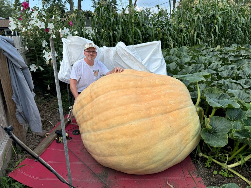 2342 Stelts DAP 50= 394 OTT is 1357 pounds. The main was chewed before this pumpkin so it developed a divot in the top middle of the pumpkin causing an anti HD shape. Other than that I'm very happy with the old girl