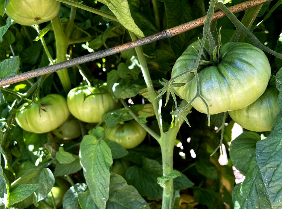 Flocks of Tomatoes � My heirloom tomatoes have had a population explosion. The hot June weather caused a massive early set. First time ever I've harvested ripe Pink Brandywines in July. In the next few weeks, the dam will burst red...