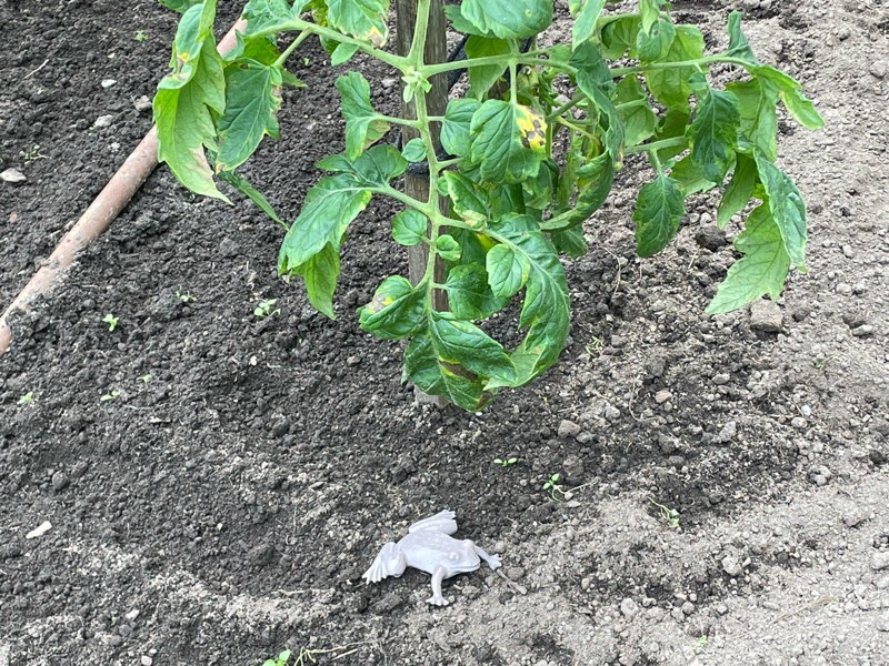 Hmmmmm. After the patch tour we were watering and checking on plants when we found a couple of these frogs. They must have fell out of one of our fellow pumpkin growers pockets.
