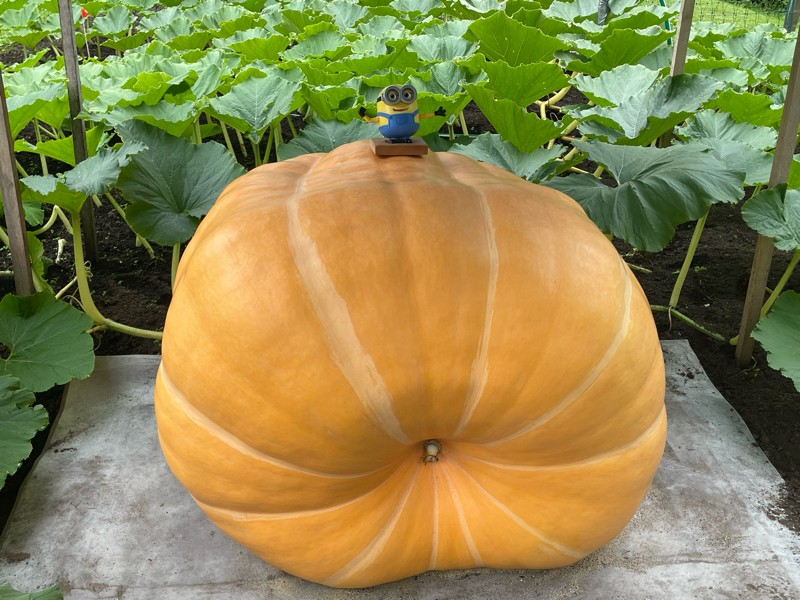 The first pumpkin up this week is Betty Crocker. Today she is 41 days old and has an OTT of 261 inches to estimate at 410 pounds. Up 134 pounds this week.