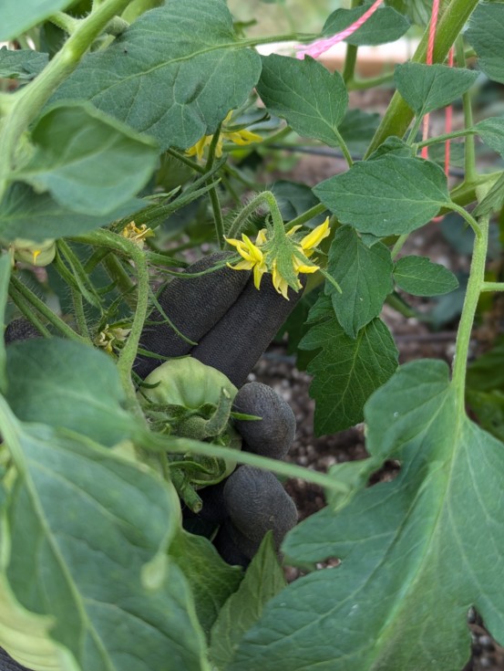Of course there is another nice mega on the Jolivette plant....why can't it be the Brown or Harnica. I wish I could just transplant it to the other tomato plant.....wait.....can you? Hummmmm