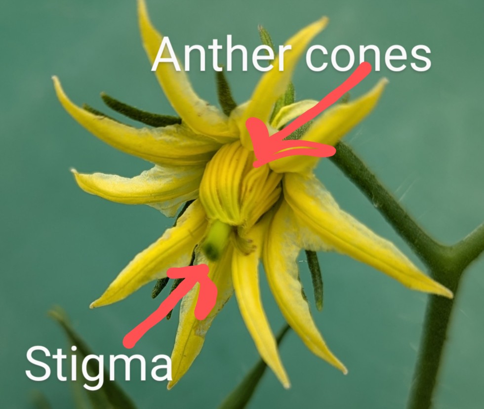 This is probably not a Megabloom but it has the mutated flower you see in them. Notice how the anther cones curl and are mishaped. Because of this the style and stigma are sticking clear out of the anther cones. Instead of the pollen being forced to come out across the stigma, with this flower it can fall out before it reaches the place it is supposed to go. Megablooms have even more twisted and mutated anther cones. Just shaking or vibrating the flower may not be enough to get it to pollinate.