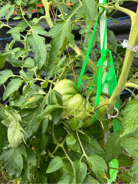 The tomatoes are tomating and putting on some slow growth. I don't think they really like all of the heat and humidity that we have been getting this year. Some of the plants are showing their age and not flying up their strings to reach the trellis top. I have been clipping some new growth to put some of that energy into the tomato.