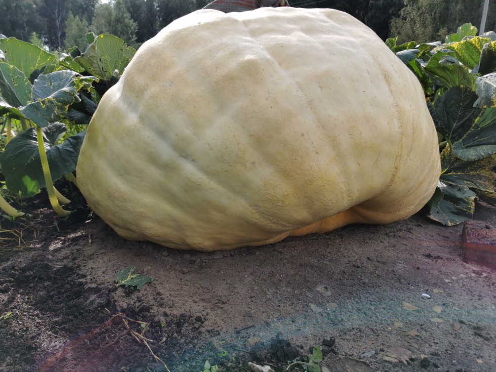 At 959, the last secondary vine, located almost on the peduncle, began to come off under pressure. Despite the fact that I was making a large stock for the growth of the pumpkin, it was not enough. The pumpkin is very wide. When I cut off the vine, it flew off with a bang.