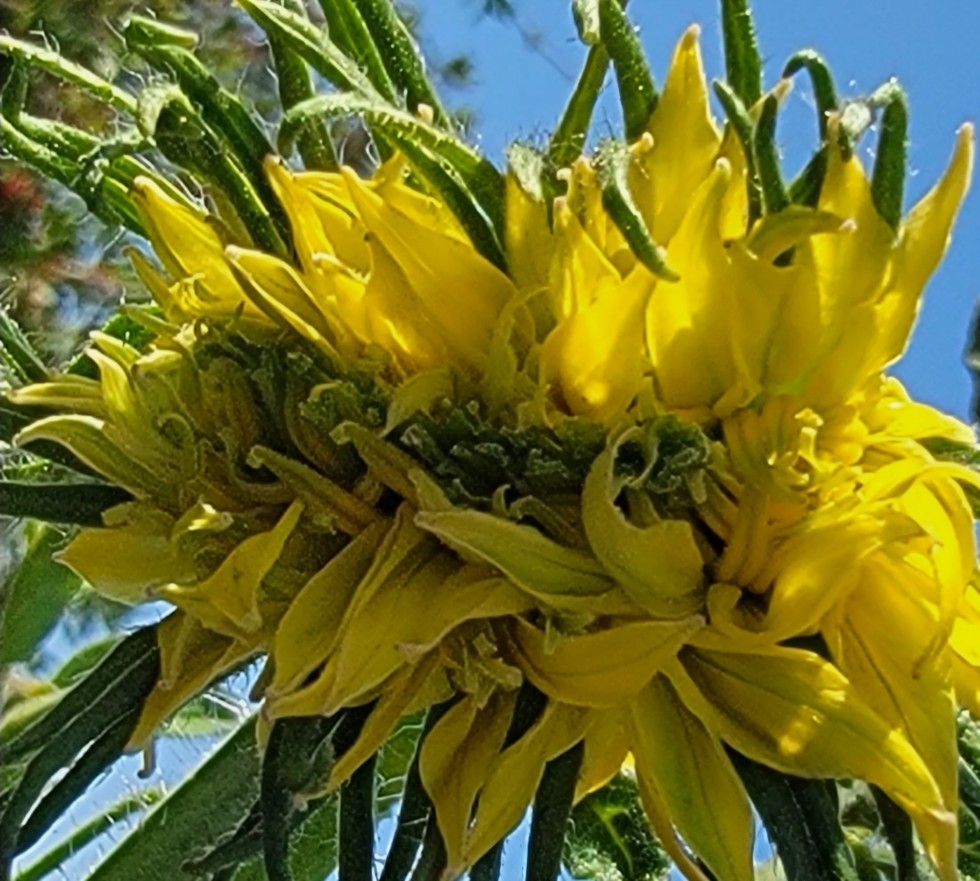 The upper deck 9.06 ribbon opened yesterday and revealed a long linear row of stigmas. Still dropping pollen today. Had several singles available to contribute extra pollen.