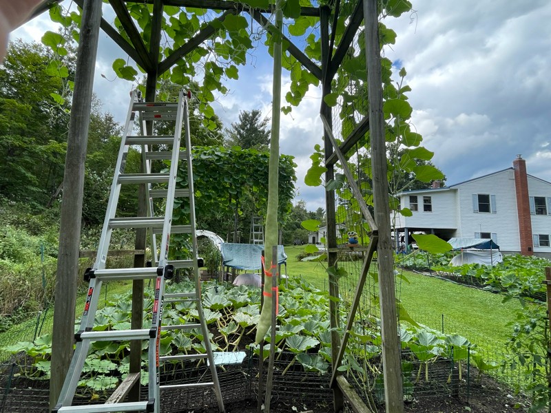 The 149 Jutras long gourd is 27 days old today and measures 123 inches today.