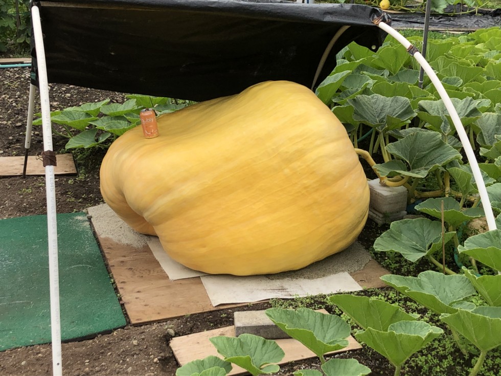 Day 50 and the 1995.5 Hoornstra pumpkin is starting to bulge out pretty good and the beginnings of a beanbag bum-over have also started. Steadily growing and is now 321� OTT and estimate around 762 lbs. A modest gain of 189 lbs in 10 days so around 19 lbs per day.