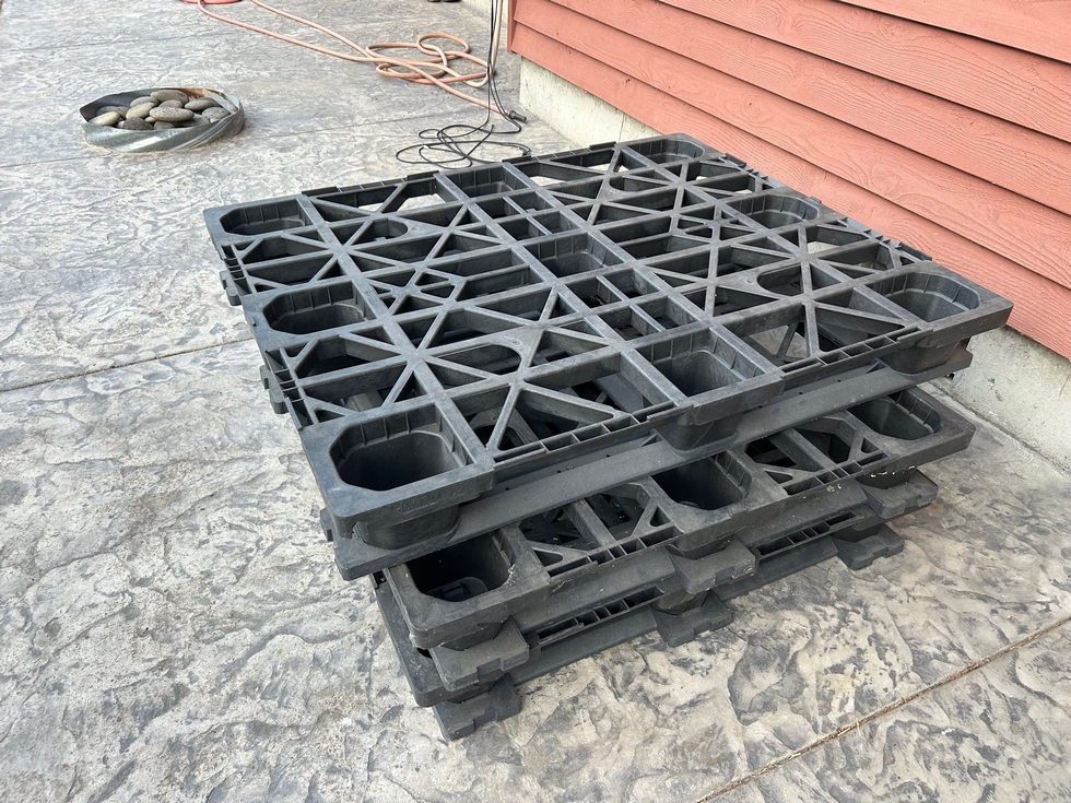 One thing that I keep thinking about when I lay in bed awake at night is: how the heck am I going to load & lift these things if they really do get as big as I think they will???? I guess the answer starts with better/lighter/stronger pallets than the crappy wooden ones that I traditionally have used. I'm hoping that these plastic pallets with a 5'x5' (or bigger) plywood deck attached to the top are the answer. These pallets are rated to hold 3,500 pounds when being lifted with forks.