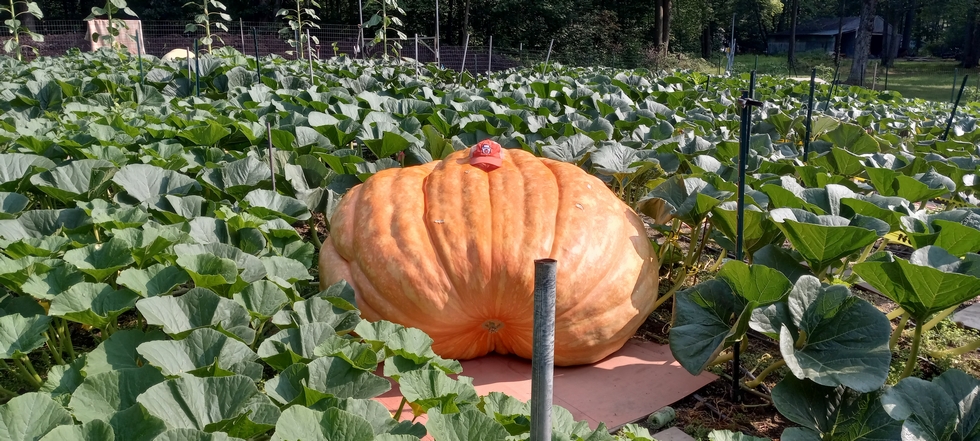 Day 60 for BIG C, the 839 Sandercock. Averaging 25.2 # a day for past 10 days, for an estimated weight of 1758#. She is a low rider !! Cc is approaching 18 feet. Plant health is fantastic, and still growing to fill in alloted 850 Sq ft. Almost there. Only concern is a rib split, especially on the underside. It's getting very ribby down there in the middle.
