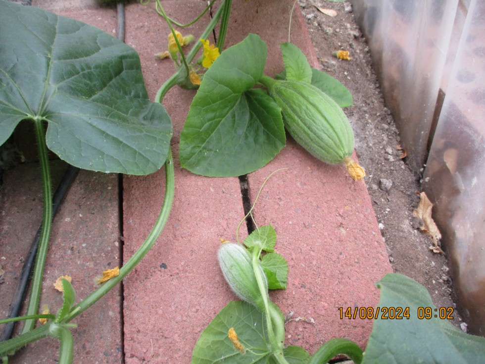 Cantaloupe Melons starting to set at last - seems they need the right weather conditions.