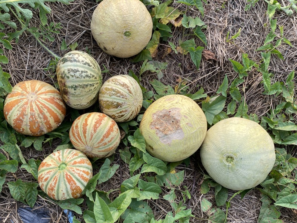 The orange melons are called Kajari melons. It will be interesting to see how they taste. I grew these last year, but they are so disease prone, they are an heirloom from Baker Creek.