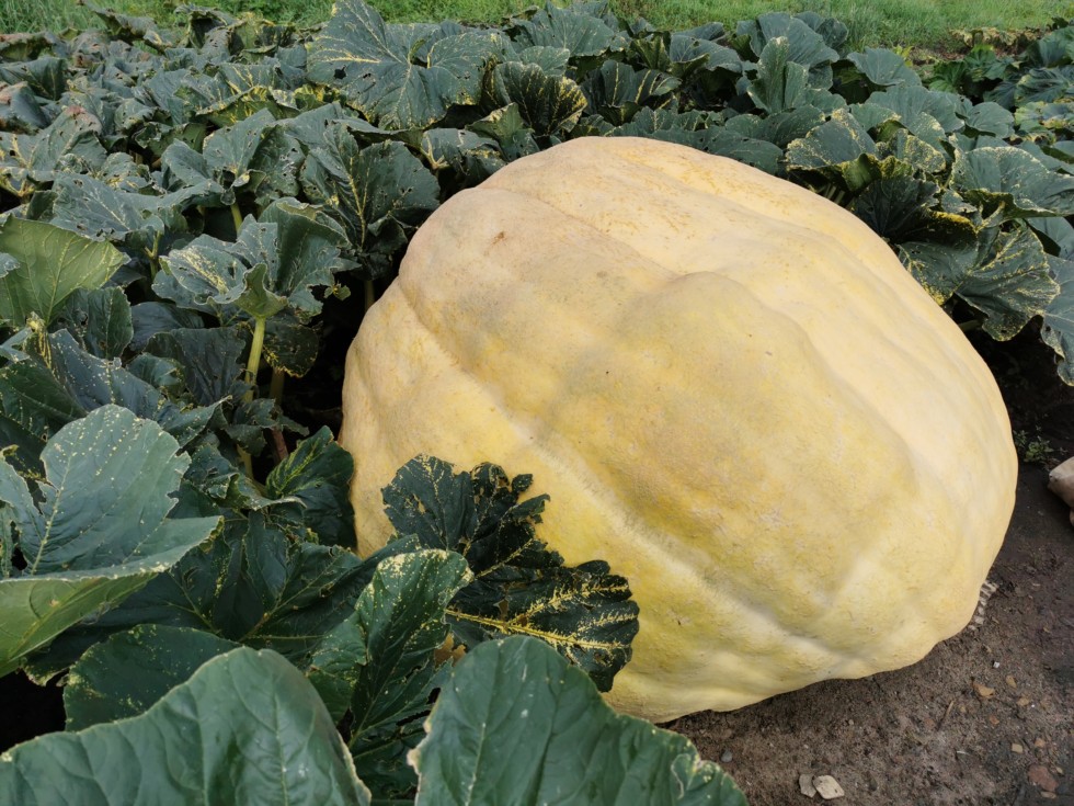 959 DAP 55 1121 lbs. Side view. The growth of all three pumpkins has slowed down. Cloudy and rainy weather affected. It's been hot for the last two days. Next, the weather is promised to be quite comfortable for the pumpkin. But the daylight hours have shortened.