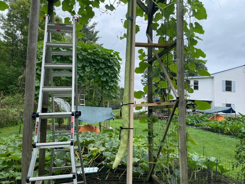 The 149 Jutras is 35 days old today and starting to slow down a lot. She will not be a personal best for us but is currently over 130 inches long. We almost pulled this plant as it looked diseased and weak. If the long gourd finishes out it will be yet another lesson learned.