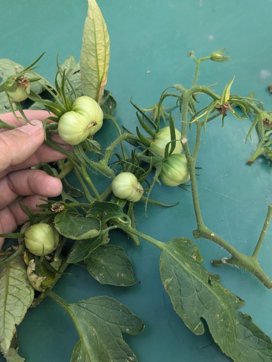 Good grief! I go away for a couple days come back and the plants are trying to grow more babies. Crazy plants...all energy goes into the ONE tomato.