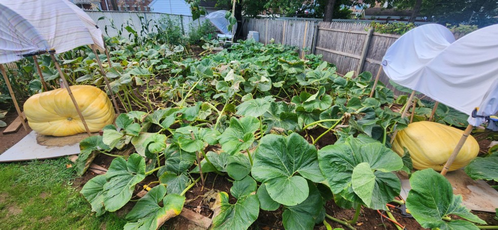 DAP 44 on the 2,222 Gienger on the left pushing 600 lbs and duplicate 2,222 Gienger on the left pushing 300 lbs DAP 37. All on one plant off two secondaries can't wait to try this plant next year off the main ill push it 1,000 plus in the hood of New Jersey backyard ??