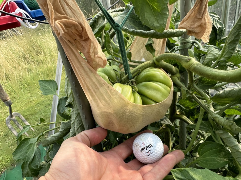 A few giant tomatoes set; still very early days. Much later than I usually do them. But trying to time for a show, vs �just grow them� and register with GPC early tomatoes.