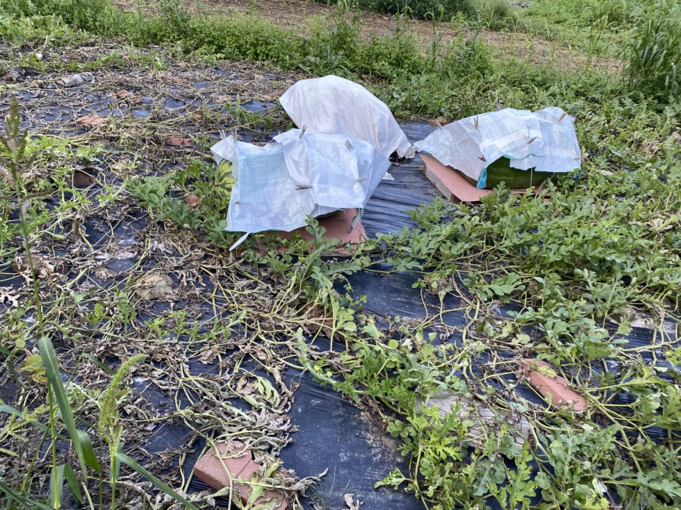 In this photo, the two melons on the left that are undercover are off the 160 Houston Carolina Cross. The one in the back is my biggest Carolina Cross. I haven't measured it because I used vines to shade it. The vines are all dead now so I threw a sheet over it And I need to get this thing weighed.The one on the right is my 159.6 jumbo black diamond I like that the plant is still alive although the stem is starting to brown up in a few spots so not sure if it's still growing.
