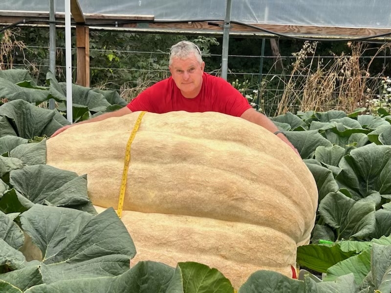 And here is the Slunger! This pumpkin is wide & long; currently measuring 120� for both the side-to-side & front-to-back measurements!