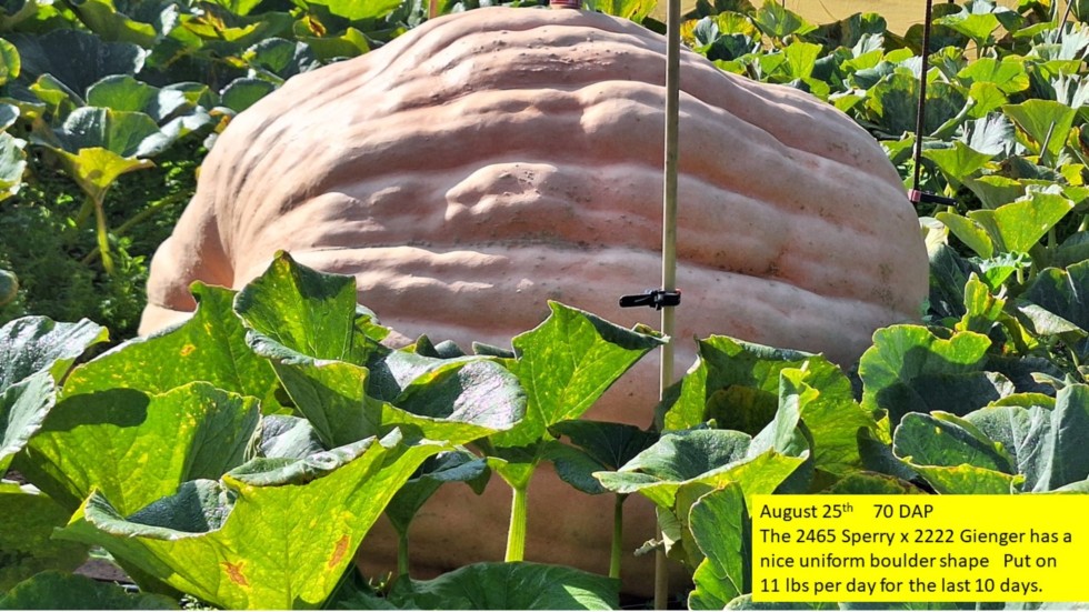Finally reached DAP 70 for my 2465 Sperry x 2222 Gienger cross. Put on 11lbs/day for the last 10 days. Slow and steady progress. I like the shape of this pumpkin. 48 days to go.