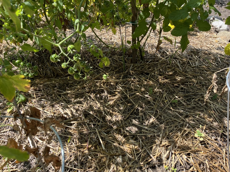 The Sweet 100s are essentially a thick bush at this point and throwing down a lot of shade.