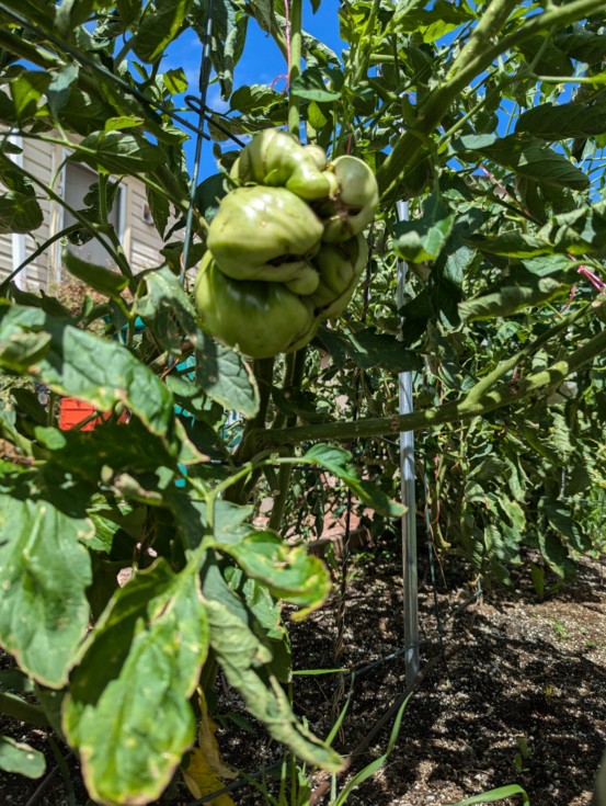 If the big blooms set in the Jolivette I might cut off the older tomato. The megabloom had so much promise but just never really took off with the growth. One of the cursed to keeping good measurement record keeping is you can do a pretty good estimate to the final weight. I almost wish I didn't know and could pretend it was going to hit 6 pounds. Sadly even with generous numbers for the future it is looking to top out at 20" :(