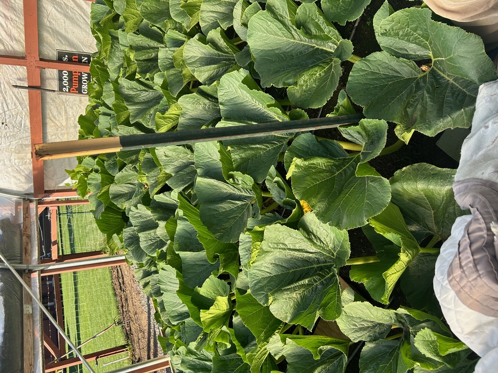 This is the plant which is growing Cole Hocker the Pumpkin. I'm only measuring every-other day now because it is just too difficult. It takes me at least a half hour to measure the three pumpkins growing in my greenhouse! Some of my grower friends harass me for measuring as often as I do. But I think it is important. Besides getting the reassurance that the pumpkins are still rolling along, it gets me out & into the plant where I can really see what is going on. If I see anything that needs attention, then I can take care of it. This morning what I saw that stood out was: how absolutely fantastic this plant looks! Hard Rock is coming up in 31 days & this plant is going to enable Cole Hocker the Pumpkin to have a devastating kick! The Oregon state record is 2469. Will Cole be able to take it down??? Stay tuned for the finish of this exciting race!