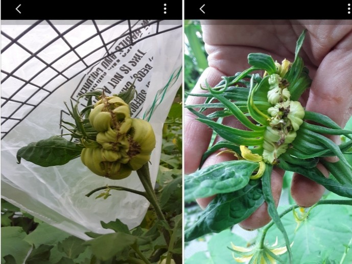 Elaine's tomato started as perfectly straight line, but its got some bends in it now. I wasn't aware that their shape can change so much that a few days later its like a different tomato. This degree of transformation is not what I would have predicted.