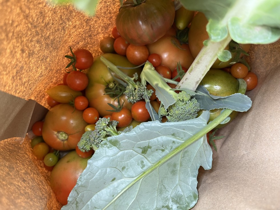 Today's harvest. Picking the Sweet and Super Sweet 100s is one of the most time consuming garden tasks these days-which is a good thing.