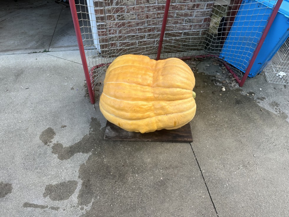This is my 2222 Gienger X 2560 Gienger that I pulled the plant because of two huge splits in the main vine(both were my fault). I do have another pumpkin currently on there that is crossed with my Sperry