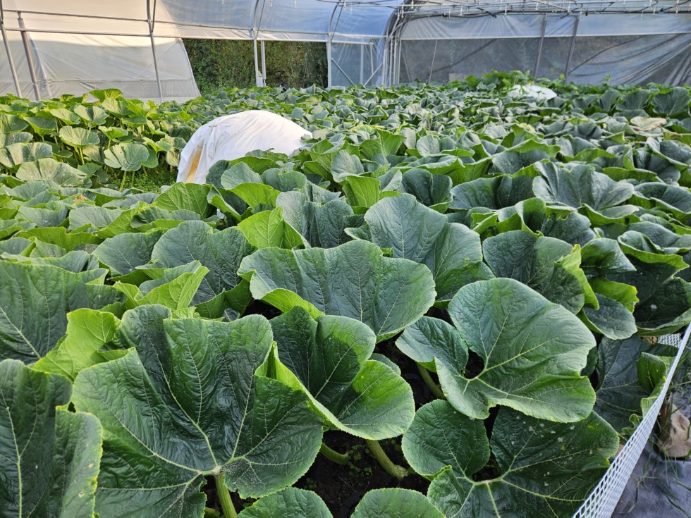 Very happy with the quality of the leaves at this time of the year. Did diff�rents things to improve air flow and reduce humidity inside the polytunnel.