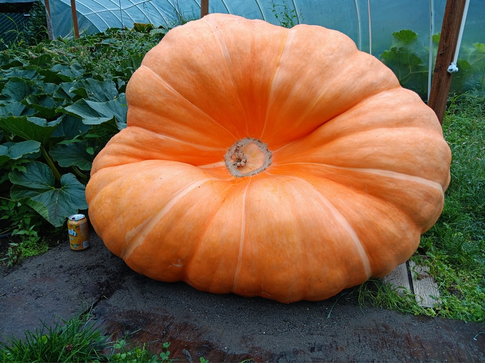 It was estimating at 855 pounds on day 63. I will try to nurse it along for 4 more weeks and get an official weight on it as a damaged pumpkin. They can keep growing for a while before rot sets in and kills them. Wouldn't be surprised if it put on another 150 pounds even with the hole.