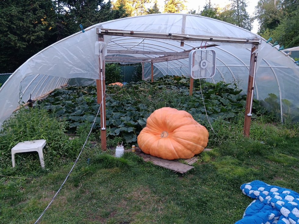 It's put on 65 pounds since the blossom split. It's now the third biggest pumpkin I have ever had by measurement behind my personal best and my other one from this year. It would have taken third at the state fair and won $1000 if it would have held together.