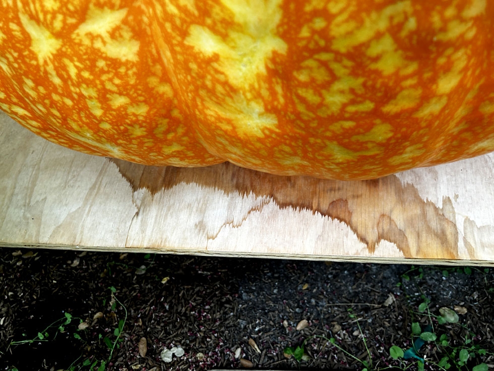 Wet Dream - When I took off the sheets this morning, I found a wet streak oozing out from the bottom of Amelia. That sinking feeling, as a short video of me cleaning up 100 gallons of stinkin' pumpkin snot flashed though my mind. I wiped some up and gave it a sniff � no smell! Checking carefully, it became apparent that it was just water. Most likely a careless splash from the hand water of the pole beans I did the day before. Good one Amelia...